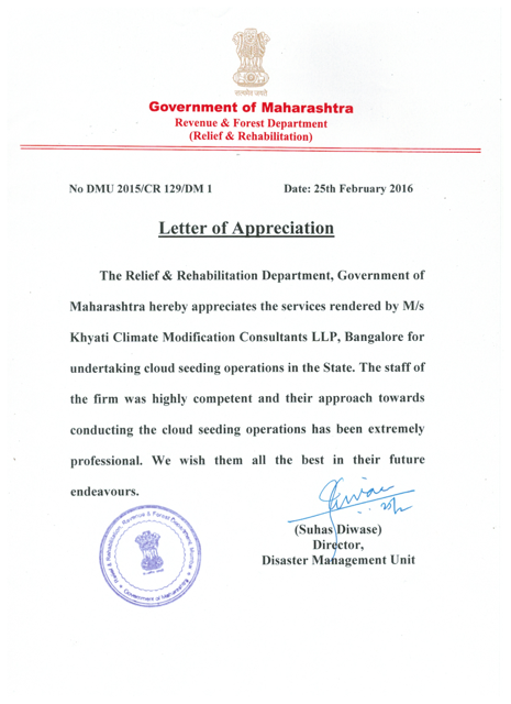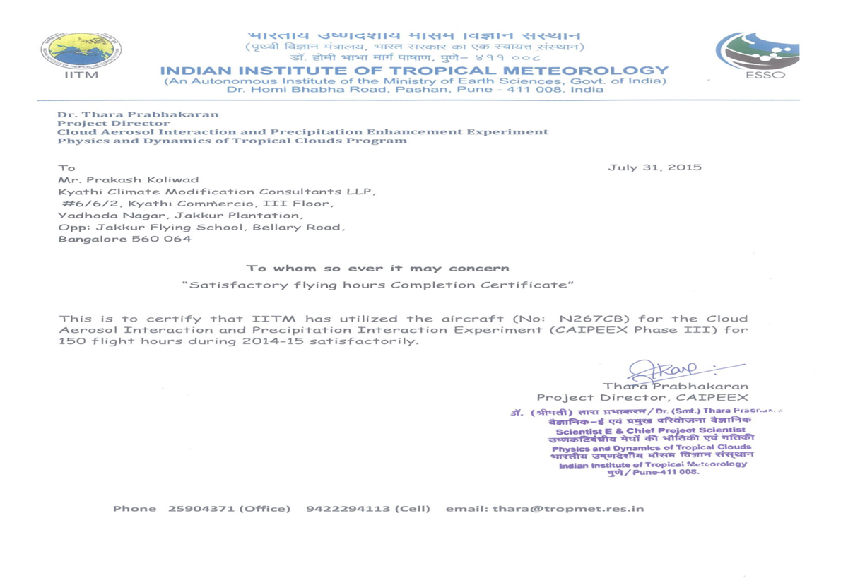 KCMC has successfully completed “Cloud Research & Seeding” operations conducted by INDIAN INSTITUTE OF TROPOICAL METEOROLOGY (IITM), PUNE an autonomous body under Ministry of Earth Sciences, Govt of India.
