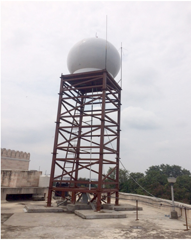 C - Band Doppler Weather Radar is installed The radar detects rain bearing clouds within 250 km radius and captures images 24*7 hrs.